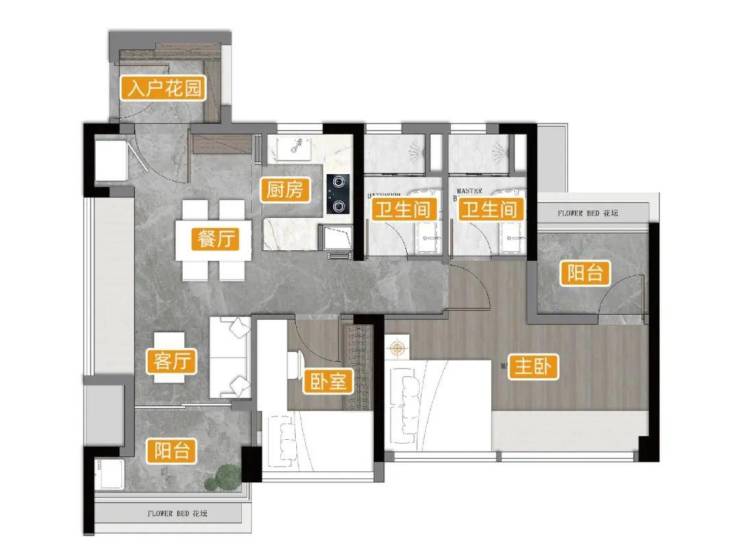 主卧与次卧同样具备高度的灵活性与适应性。当两者合并为大套房,居住体验瞬间升级,小户型也能宽敞又舒适。