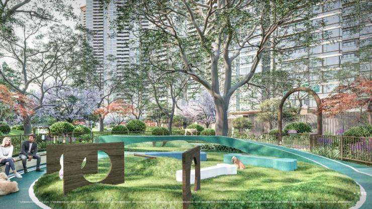 萌宠乐园:宠物游乐设施、草坪跑道、宠物便便箱,为毛孩子们建造一个专属乐园,总面积约为340㎡