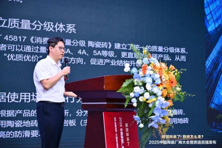 国家陶瓷及水暖卫浴质量监督检验中心副主任区卓琨从新国标检测角度为大会奠定专业基调,她指出新国标构建统一质量坐标体系,覆盖主流品类,建立公平竞争标尺,助力破解市场断层,推动形成优质优价,分级竞争的健康生态。