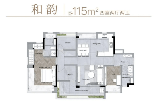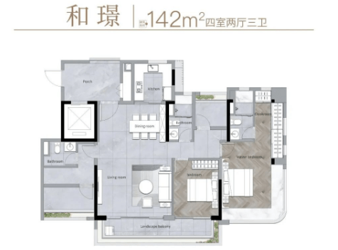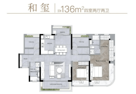 首推4栋高层住宅,为2梯4户,主推建面86-136㎡三至四房,主打一个高使用率、高赠送,户型可圈可点。