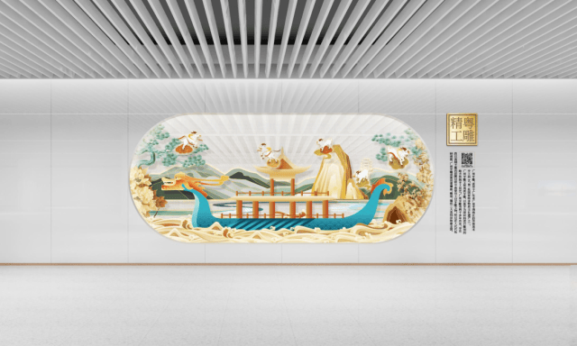 设计方案:国家级非物质文化遗产——广雕(中医药大学站——广州核心国际会议中心区展览展示窗口)。