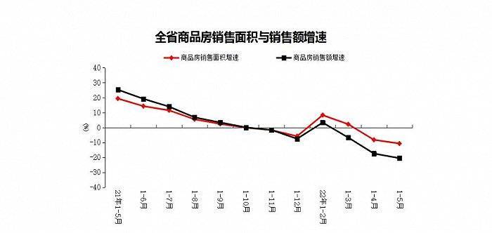 1-5月份,商品房销售面积3990.16万平方米,同比下降10.7%,其中,住宅销售面积下降12.2%;商品房销售额2424.39亿元,下降20.5%,其中,住宅销售额下降22.8%。