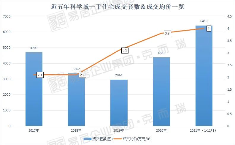 除了成交亮眼,科学城的价格也相当坚挺。短短5年,板块房价已经实现了2字头到4字头的飞跃。