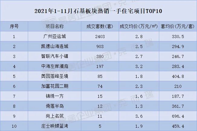 在大盘亚运城的支撑下,石基板块在今年前11月成功突破4000套,成为区域内最畅销板块。