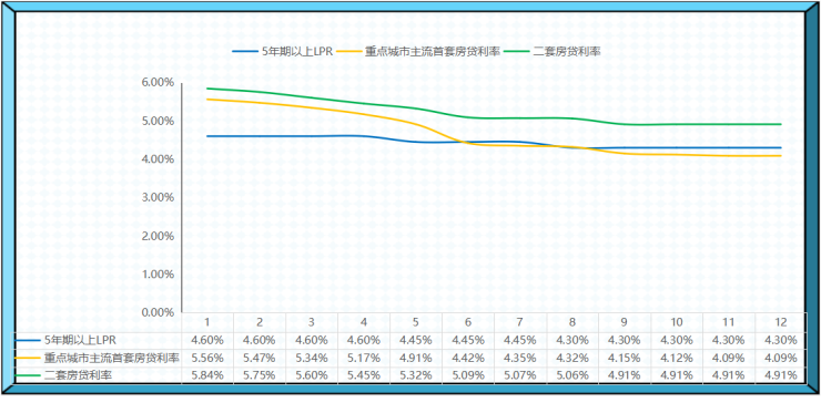 至12月,首套主流利率平均为4.09%,较之年初的5.56%下降了1.47%,降幅不可谓不大;二套平均为4.91%,相较1月下降了0.93%,降幅略低于首套利率。
