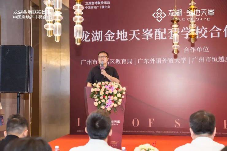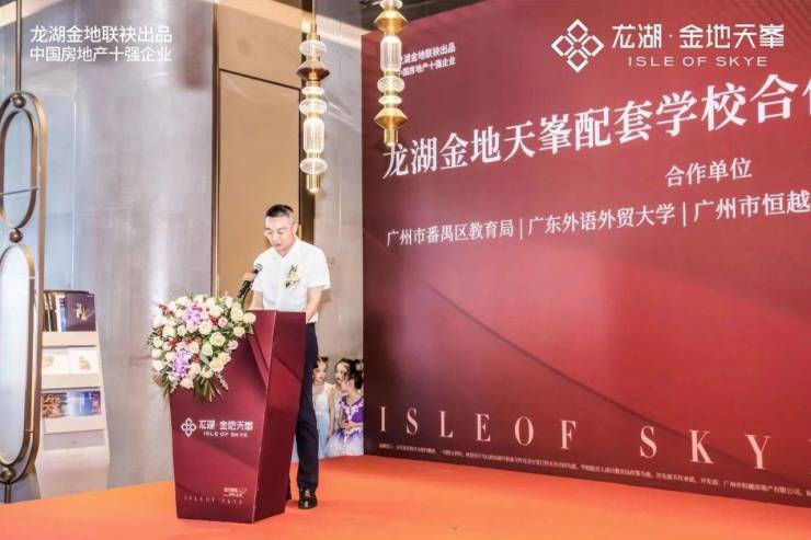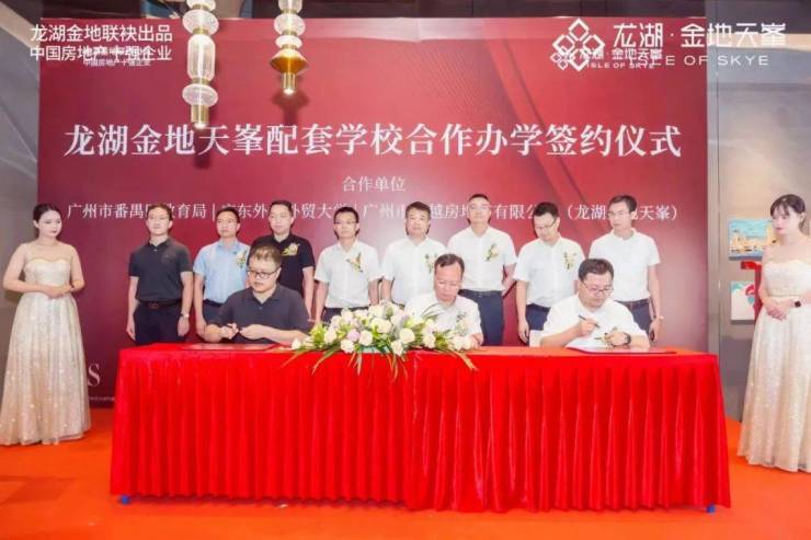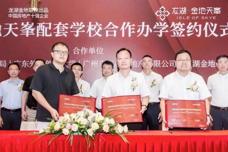 5月19日,广州番禺区教育局、广东外语外贸大学、广州市恒越房地产有限公司(龙湖金地天峯)三方合作办学签约仪式圆满举行,标志着一所优质的24班公办小学——广外附小正式落地龙湖金地天峯。