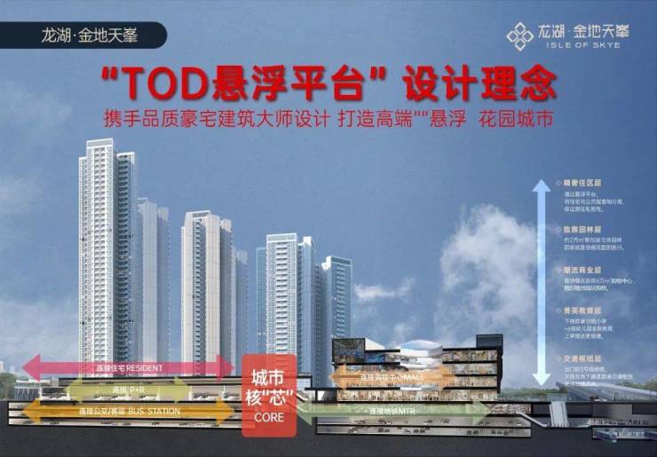 龙湖金地天峯,遵循“垂直都会”开发理念,将“职、住、娱、商、学、休”等功能纵向叠加,同时通过TOD悬浮平台,构建紧凑立体的都市生活,营造层次丰富,立体多元的日常。
