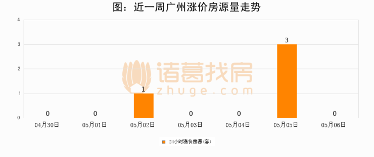 根据诸葛找房数据显示,广州24小时涨价房源量为0套,较05月05日减少3套,环比下降100%。与此同时,涨价房源占比小幅回落,对于购房者来说是一个入市窗口期,购房者可抓住时机入市。
