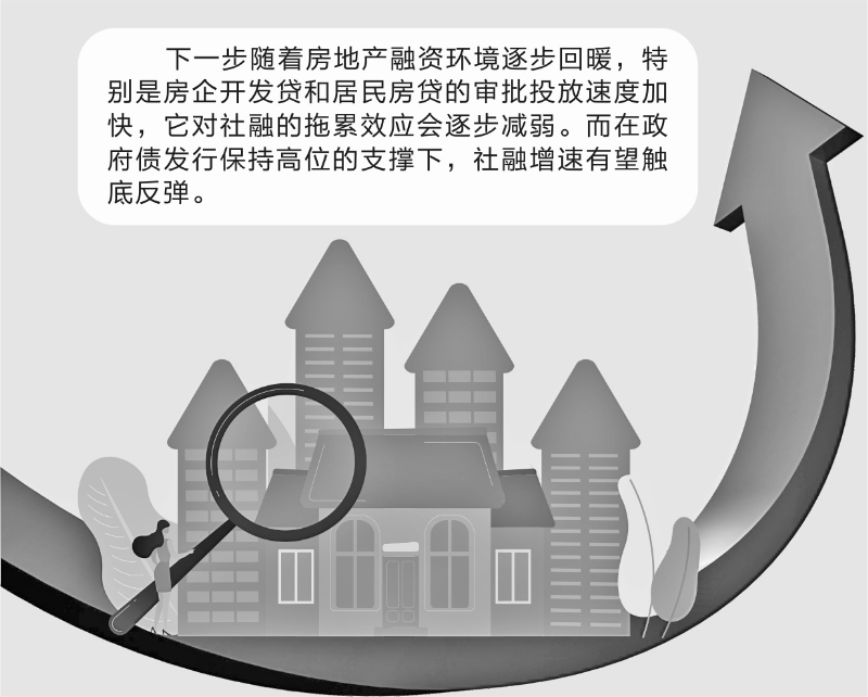 接受证券时报记者采访的专家认为,下一步随着房地产融资环境逐步回暖,特别是房企开发贷和居民房贷的审批投放速度加快,它对社融的拖累效应会逐步减弱。而在政府债发行保持高位的支撑下,社融增速有望触底反弹,多家机构预计社融增量有望超过1.6万亿元。