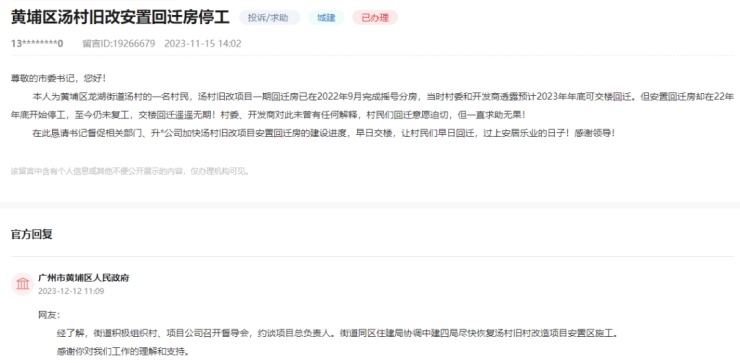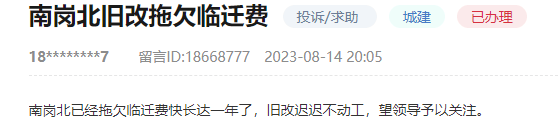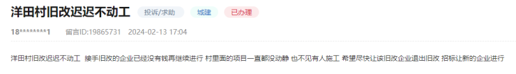 早前,有村民在人民网领导留言板上反馈该旧改项目停滞不前,村民们渴望快点能搬回去,早早能住上自己的房子。