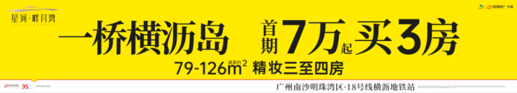 一桥横沥岛,一桥通前海,星河畔月湾傲踞价值叠加高地,小投入大回报,置业南沙,值选星河畔月湾。建面约79-126㎡精妆三至四房,首期7万起,即可轻松入住18号线地铁好房。