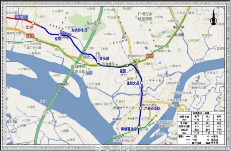 地铁五号线东延段线路起于文冲站,向东延伸至黄埔新港站,全长约9.8公里,设双沙、庙头、夏园、保盈大道、夏港和黄埔新港6座车站,其中换乘站3座(夏园可换乘地铁十三号线、规划地铁四十号线、保盈大道可换乘规划地铁二十五号线、黄埔新港可换乘规划地铁十七号线、东莞地铁一号线、黄埔有轨电车二号线),采用地下方式敷设,设双岗停车场一处车辆基地,采用6节编组L型列车,最高运行时速90公里/小时。地铁五号线东延段线路将与既有地铁五号线有机结合,串联起广州市多个重要功能区,进一步优化城区交通线路。