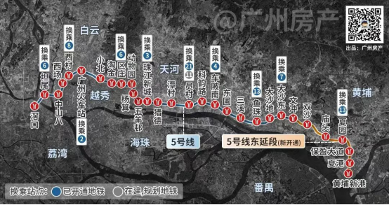 14年前地铁5号线通车,贯穿广州四大城区,连通环市东、珠城、金融城和白鹅潭等CBD,造就多个GDP产值千亿板块。
