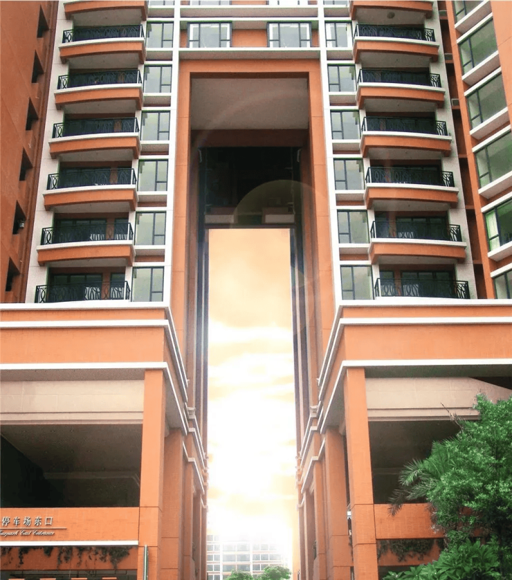 风水洞把自然风引入进来,保持清新凉爽的小区气候,这个设计还让项目形成了一个藏风纳气的风水宝地。