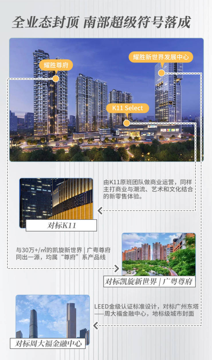 同时,耀胜新世界与凯旋新世界同出一源,均属 “尊府” 系,复刻珠江新城 “凯旋新世界 + K11 + 广粤天地 + 周大福金融中心” 模式,高度沿袭了凯旋新世界的豪宅基因。甚至还考虑到经过这里的每一缕风的走向,都采用类似凯旋新世界的风水洞设计。