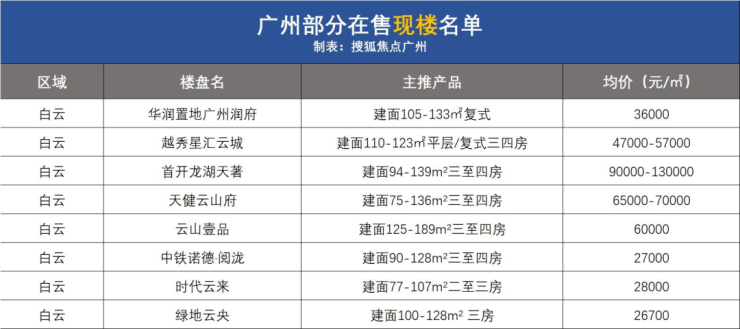 此外白云新城版块的“豪宅圈”中,首开龙湖天著、天健云山府、云山壹品均有现房销售,较低6万/㎡起。