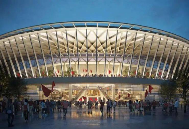 据“中建四局”官方微信号介绍,该项目作为可以承办洲际赛事的国内最大的专业足球场之一,足球场负二层为车库;负一层为运动功能用房、贵宾门厅及配套商业区;地上首层为嘉宾、包厢门厅和商业配套;二层为嘉宾区、包厢及商业配套;三层、四层为观众集散平台、嘉宾及其招待区、媒体运营区、体育简餐零售等。各功能集约分布在各层,打造一个高效集约规模适度的有机球场。