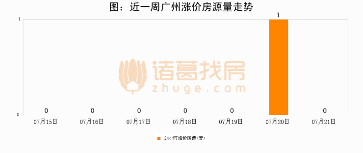 根据诸葛找房数据显示,广州24小时涨价房源量为0套,较07月20日减少1套,环比下降100%。与此同时,涨价房源占比小幅回落,对于购房者来说是一个入市窗口期,购房者可抓住时机入市。