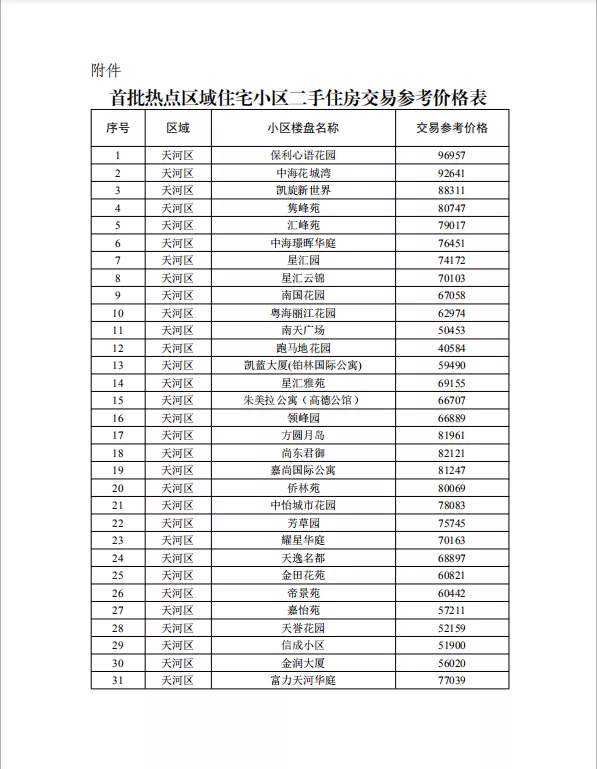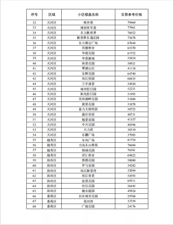 一、成交活跃的热点区域,以住宅小区为单位,由广州市住房政策研究中心在过去一年二手住房网签成交价格基础上,综合考虑评估价格、周边一手楼盘成交价格等因素,形成二手住房交易参考价格,视市场运行情况在我局官方网站、微信公众号等适时发布。