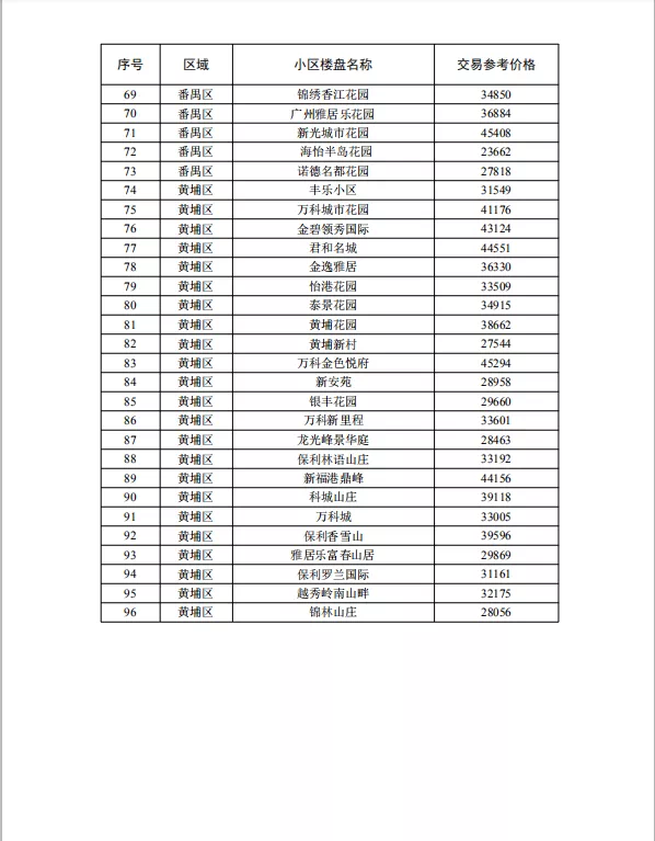 本次“二手指导价”落地的首批96个楼盘,主要集中在天河、黄埔,剑指去年以来部分小区业主“抱团涨价”“扰乱市场秩序”等行为,为热点板块降温。