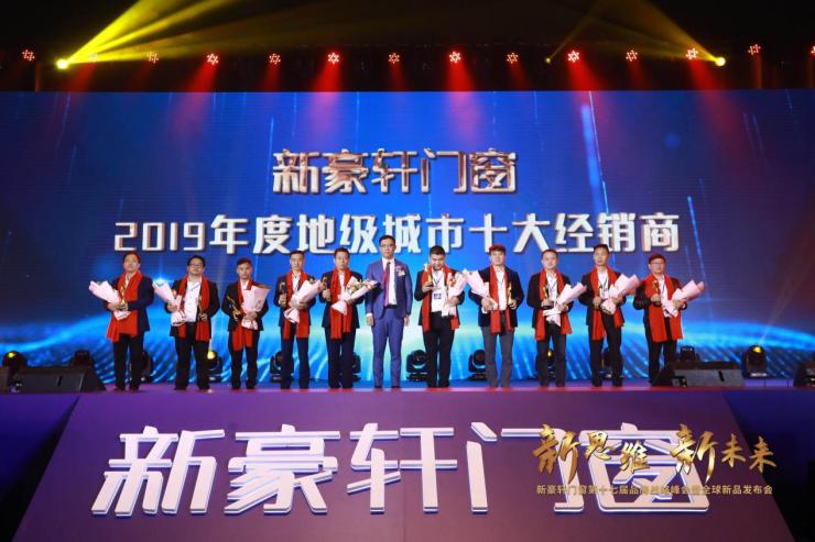 新豪轩门窗营销总经理李阳先生颁发“2019年度地级城市十大经销商”荣誉