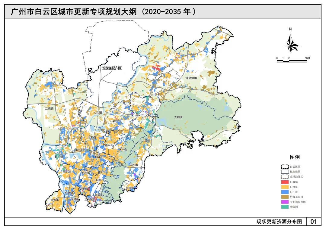 看看今年1月白云区正式发布的《广州市白云区城市更新专项规划大纲(2020—2035年)》。规划中,白云全区被划为93个更新片区,其中50个是近期重点更新片区,总面积约328平方公里,平均每个城市更新片区面积约3.5平方公里。其中,旧村庄改造项目有29宗,改造范围总用地面积约25.02平方公里。2020-2023年推进项目8宗、2024-2025年推进项目21宗。