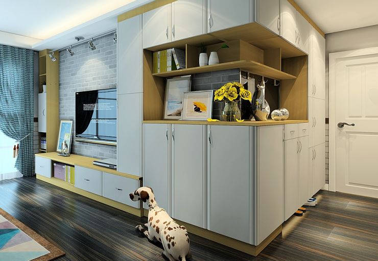 *有人可能会说,家里地方有限,进门就是厅,不存在玄关。爱比尔家居告诉你:对于现在定制家具流行的时代,定制鞋柜就能做到“无中生有”。根据空间面积设计,如果开门见厅,就利用鞋柜做隔断;如果进门处连接客厅,那么利用墙面设计,把电视柜和鞋柜组合设计,一举两用,还美观。