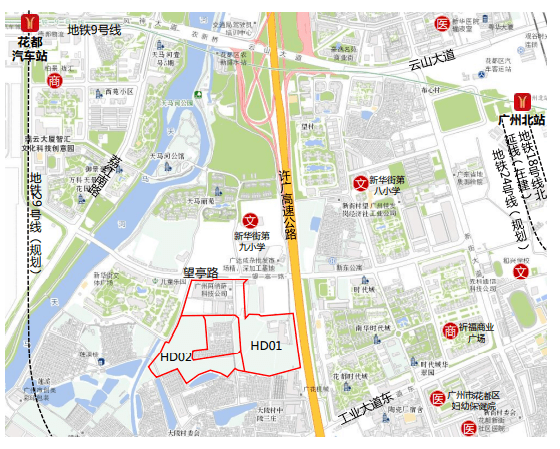 广花公路东一地块C分地块二、分地块四/J12-SJ02地块均位于广东花都湖国家湿地公园附近,自驾约40分钟可到达广州市区,周边配套相对成熟、齐全。
