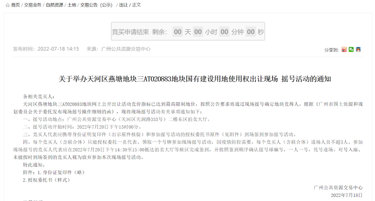 “明星地块”天河区燕塘地块三进入摇号环节。图源广州公共资源交易中心