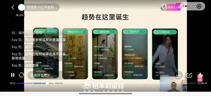 5月12日-15日,格莱斯开展全国公开课培训,专业导师详细解读小红书新知识,拆解小红书家居流量新风口与瓷砖品类爆款逻辑,揭秘品牌高转化内容矩阵布局,助力经销商借势平台生态精准卡位,分享KOS高效转化新链路。同时,导师还介绍了如何借助AI技术提升内容选题和输出效率,赋能数据洞察与营销提效,助力经销商抢占流量红利,实现品销双增。通过实操方法和工具的分享,让门店能够掌握在小红书平台的玩法,撬动流量助力转化。