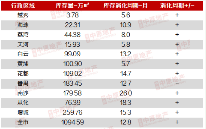 截至2月末,广州全市一手住宅库存量1074.1万平方米,去化周期12.8个月。其中,越秀、天河、黄埔3区去化周期仍不足6个月,相对紧张;但白云、花都、番禺、南沙、从化、增城六个区域的消化周期都在一年以上,当中南沙高达26个月。