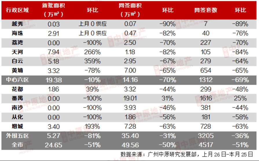 据广州中原研究发展部数据,2月(统计周期:上月26日至本月25日)广州新房网签4517宗,环比下跌51%,同比去年同期成交下跌47%。