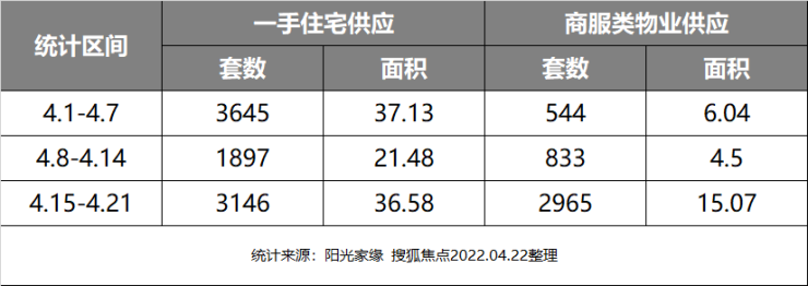 据搜狐焦点监控阳光家缘统计数据显示,本周(4.15-4.22)广州一手住宅供应量高达3146套,面积36.58万㎡;商服类物业供应量达2965套,面积15.07万㎡。