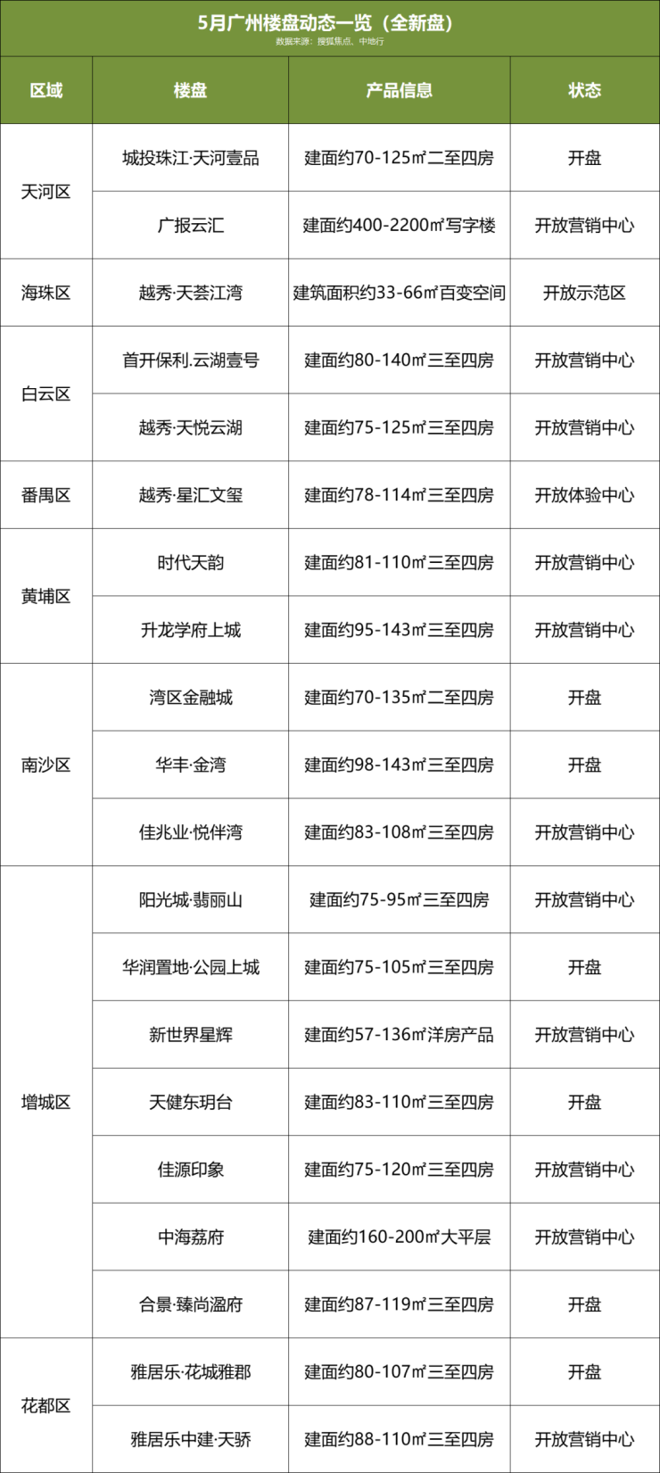 同时,广州约44盘有动作(20个为全新盘),涵盖8盘开盘、18盘加推新货、18盘开放营销中心/样板间/示范区等。看到这,不知大家有没闻到传统楼市“红五月”大战的味道。(更多详情戳:硝烟四起!火拼5月!44盘蓄势待发,多达20个新盘要来)