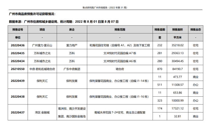 成交方面,当周广州一手住宅成交1034套,环比下降48.89%;面积10.89万平方米,环比下降49.82%;其中,增城、黄埔、天河分别以263套、151套和123套的成交规模位居前三。