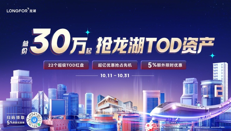 值得关注的是,10月23日晚8点,广州龙湖揽境、宁波龙湖天曜上城、成都龙湖•梵城、龙湖·西府公馆、重庆龙湖光年、龙湖天际、海口龙湖光年,昆明龙湖时代金融中心、武汉龙湖光谷城等热销TOD项目,将在龙湖U享家小程序进行直播并放送亿元钜惠福利。