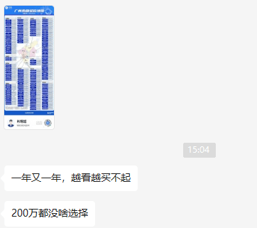 近日,朋友大鹏扔给血拼哥一张某平台发布的广州热盘总价地图,还感叹了几句:买房好难啊。就算200万,都挑不到什么好房子。