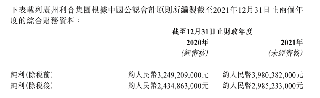 截至2021年12月31日,广州利合集团未经审核资产净值约为人民币291158.2万元。预期于交易完成后, 该公司将会录得估计收益约人民币69867.7万元。