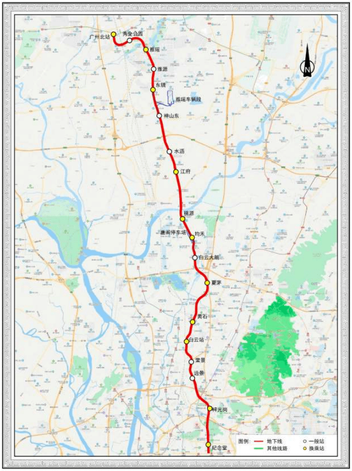据悉,地铁24号线为全地下敷设线路,共设站18座,分别为纪念堂站、梓元岗站、远景站、棠景站、白云站、黄石站、夏茅站、白云大朗站、均禾站、桃源站、江府站、水沥站、神山东站、东镜站、雅源站、雅瑶站、秀全公园站、广州北站站。