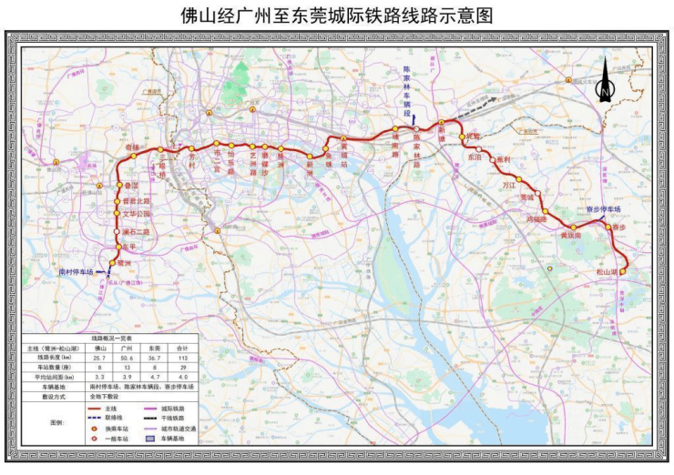 该报告也首次公布了地铁28号线完整版线路走向以及站点,全线设站29座,全长113公里,其中:广州段设站13座,全长50.6公里;佛山段设站8座,全长25.7公里;东莞段设站8座,全长36.7公里。