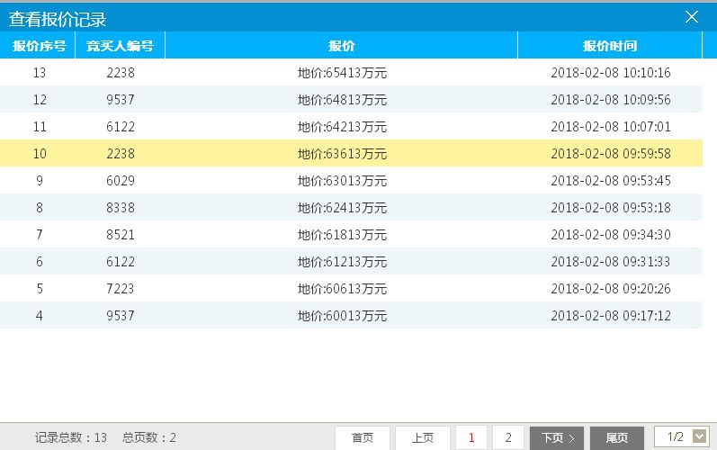 【10:10】拍卖开始后,开发商报价速度并不快。从报价记录来看,目前有10家开发商进行过报价。较新报价为65413万元。