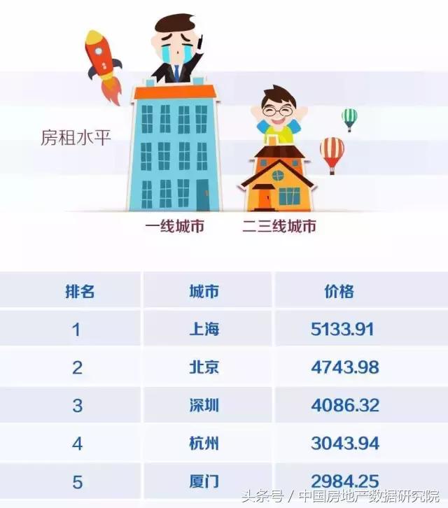 其中,一线城市中的上海、北京、深圳每套住宅平均月租金都超过了4000元,今年6月,上海、北京、深圳的月租金分别为5133.91元、4743.98元、4086.32元;上海以每套每月5133.91元的价格成为内地租金最贵城市。