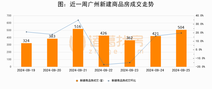 【广州成交日报】09月25日新房成交504套;涨价房源19套