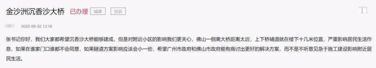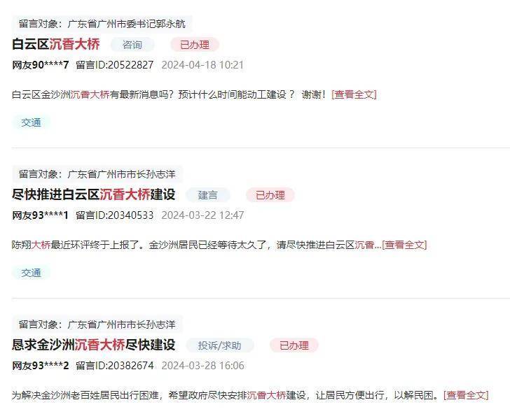 在人民网领导留言板近期的信息上,越来越多人呼吁加快沉香大桥的建设。