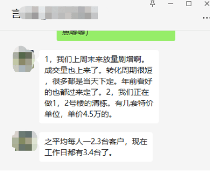 根据言女士介绍,目前来看,客户的转化周期短,很多都是当天下定,特别是年前看过犹豫的也来现场下定了。