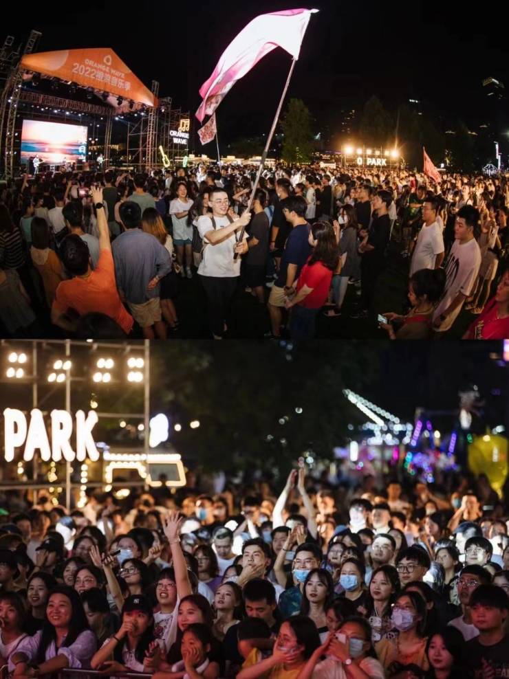 乐队的深厚唱功与动听旋律让现场粉丝尖叫连连,多种音乐风格相汇融合营造出超燃的音乐现场。偶像与粉丝狂欢今夜,周边约10万热迷,欢聚江畔公园在共度国庆狂欢。