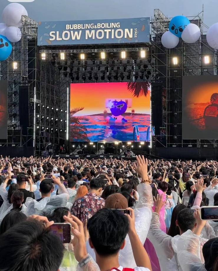 躁动的音乐节现场,数万名观众齐聚在这场时光穿梭旅程中,经典粤语《海阔天空》《红日》重现经典,尽展拾叁唐livehoue风采;现场潮流live氛围的《第一天》《你的微笑》等多首脍炙人口的作品,引发了现场乐迷的热情合唱。