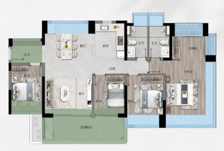 建面约125㎡四房户型,堪称科学城区域轻奢住宅的典范之作,四开间朝南,南北通透,生活舒适性高。客餐厅LDK一体化设计,空间开阔,尺度感十足,全家人在不同地方活动也能无障碍交流。