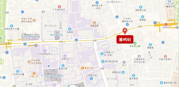 雅鸣轩距离农讲所地铁站250米左右,靠近北京路商圈,有广百和新光百货等多个商场,还有城隍庙、南越王宫博物馆,地段相当繁华。