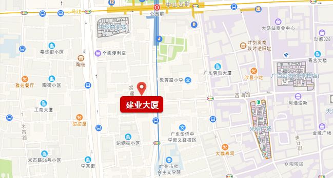 建业大厦,距离公园前地铁站不到300米,属于北京路商圈,广州市社会主义学院、广州公社旧址、广州市民政局等都在周边。